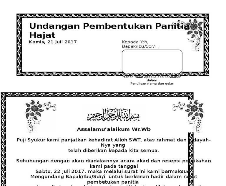 Pada contoh yang akan kita bahas kali ini termasuk surat dari instansi pendidikan yaitu sekolah. Ketika mengadakan atau menghadiri sebuah rapat eksternal, pastinya tidak bisa memonitor secara langsung karyawan di. Text of contoh proposal pengajuan pembentukan organisasi. Harus mematuhi format dan aturan yang telah ditentukan. Undangan musyawarah pembentukan panitia idul adha.